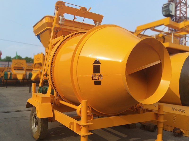 JZC500 electric concrete mixer is a self-falling concrete mixer with double-cone mixing drum for forward mixing and reverse discharging. Each drum can mix 500L of concrete (referring to the volume of compacted concrete), and can produce 18-20 cubic meters per hour.