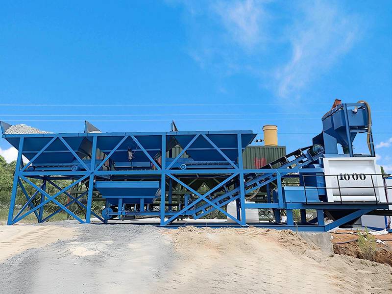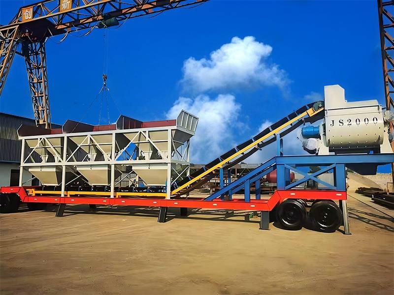 YHZS120 forced mixer belt conveyor mobile concrete batching plant adopts a JS2000 double horizontal shaft concrete mixer, batching machine adopts a PLD3200 batching machine, the theoretical output is 120 cubic meters per hour.