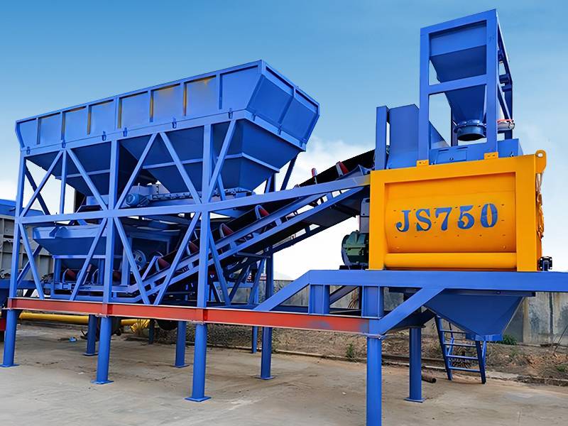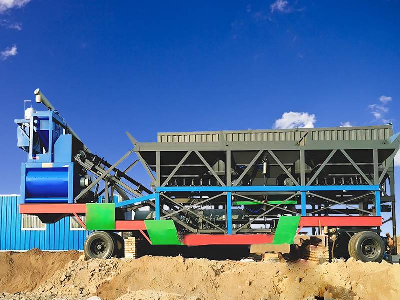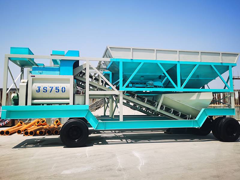 YHZS35 forced mixer belt conveyor mobile concrete batching plant adopts a JS750 double horizontal shaft concrete mixer, batching machine adopts a PLD1200 batching machine, the theoretical output is 35 cubic meters per hour.